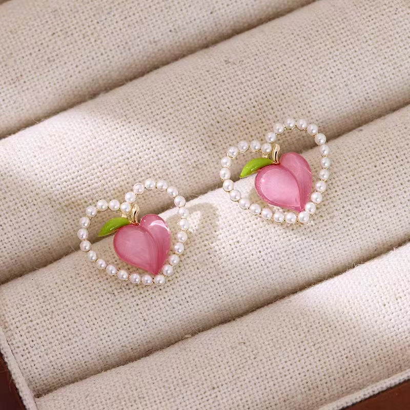 14K Gold-plated Peach Pearl Love Stud Earrings