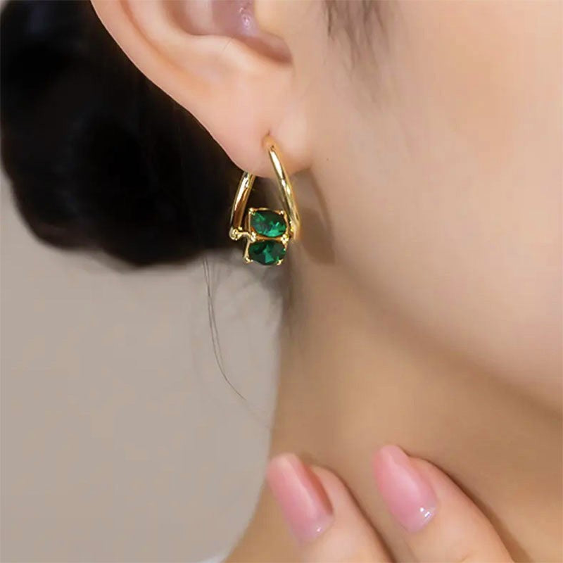 14K Gold-plated Stunning Green Crystal Earrings